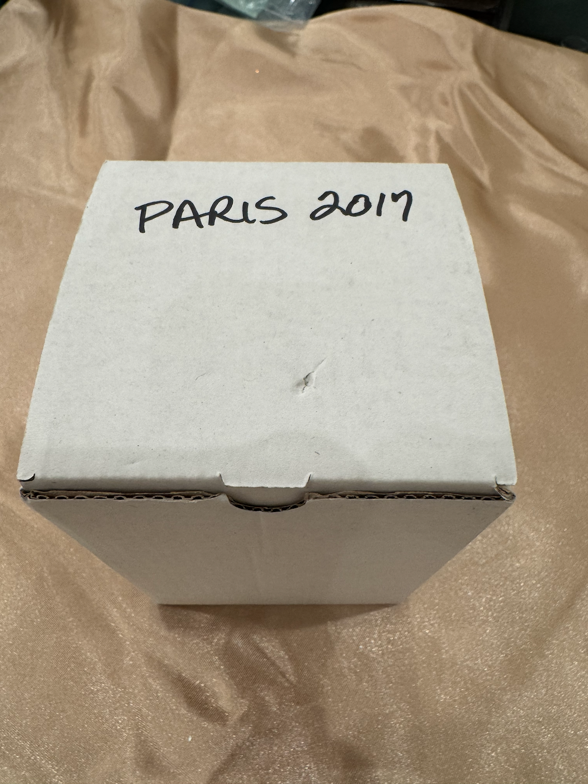 Stored in a small red holographic gift box with a dark window on top. The maker is not identified on the container.